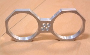 家族3人の眼幅が60〜63mmの間に入っていたのでBINOの眼幅は62mm固定に決めました。左右をつなぐフレームは単なる板なので自作するのは簡単、でも使ってもらうために少しマシなデザインにしたいと思い、仕上げの良さも違うため加工屋さんに依頼しました。