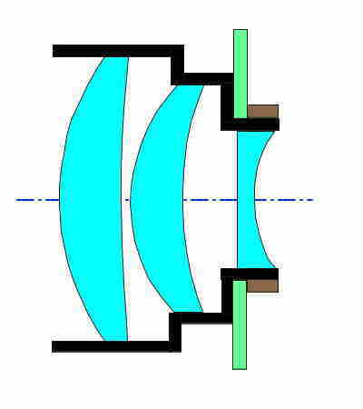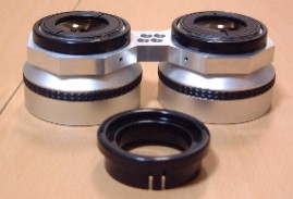 分解しようと長い柄のカニ目でトライしましたがリングが強力に固定されていて簡単には緩められず断念。光学系は3群3枚だそうです。ニコンの弱視用眼鏡(3群3枚、10年ほど前に製造中止したそうですが。)の資料があったので同じような光学系ではないかと推察します。倍率は公称2倍ですが実際は1.8倍ぐらいで低め、視野周辺は糸巻き歪曲収差と倍率色収差が出ますが、眼側のレンズ口径が大きくアイレリーフはニコンと同程度あり、瞳の位置に寛容で覗きやすい。見掛け視野は裸眼で60度弱というところです。コーティングが全面単層のようですが価格相応でしょう。コストパフォーマンスはかなり高いです。