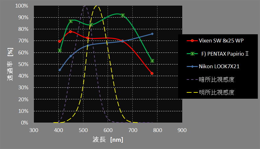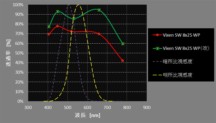 比較としてGoddess8X42初期モデルの透過率を付けました。