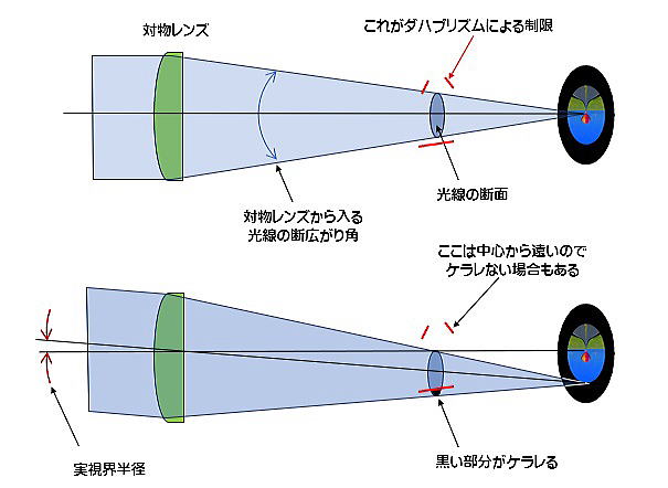 ダハプリズム(シュミット・ペシャンプリズム)双眼鏡の場合のケラレはどうなるのでしょうか。