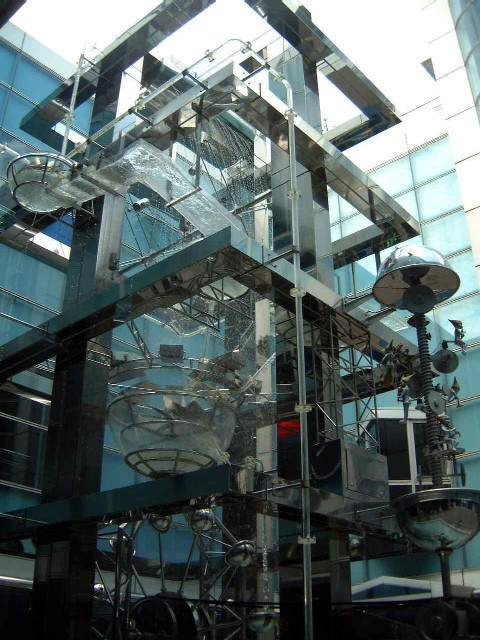 中庭にある巨大な水のオブジェ。 →